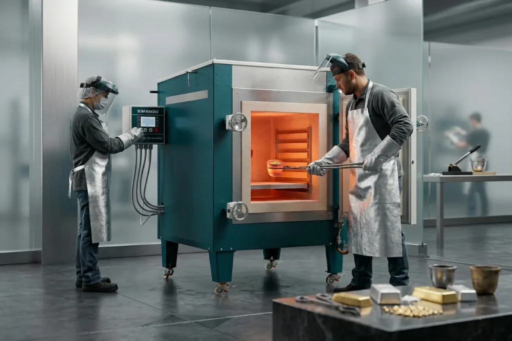 Ramat fırınlarımız, kuyumculuk atölyelerinde oluşan metal tozları, filtre kalıntıları ve üretim atıkları gibi değerli materyallerin geri kazanılması için özel olarak tasarlanmıştır. Stabil sıcaklık kontrolü ve dayanıklı fırın yapısı sayesinde yüksek verimli bir geri kazanım süreci sağlar. Modern kontrol sistemi ve güvenli kullanım özellikleri ile hem küçük hem de büyük üretim tesisleri için ideal bir çözümdür.