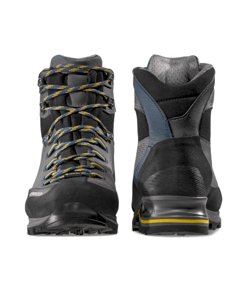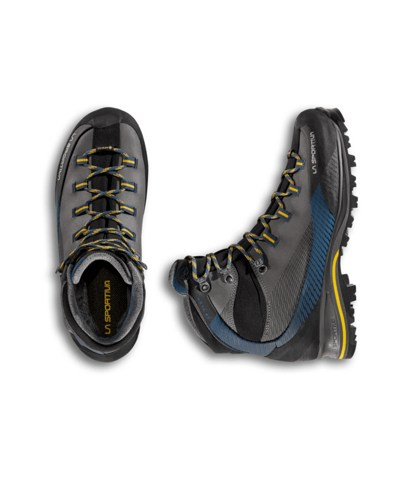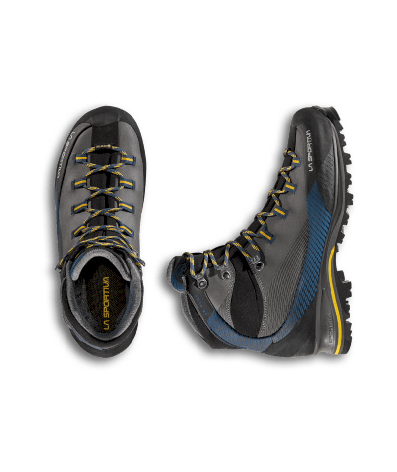 ColorCode: G00E26 | E32O06 | N10R17 Left-over: No PFAS FREE: Yes Plus: + Waterproof, abrasion resistant uppers Product Description B2B: This model distinguishes itself from the other trekking products thanks to the innovative waterproof leather Idro-Perwanger, keeping weight and volume in check. The GORE-TEX Performance Comfort membrane guarantees breathability and waterproofness, the 3D Flex system applied to the heel provides support and allows for the maximum control on steep terrain. The graded lacing system allows for perfect regulation of volumes while the Vibram sole with Climbing zone at the toe makes the shoe idea for via ferratas. The Trango look and La Sportiva technology combine for comfort, protection and safety in the mountains. Promo: No Resole Me: Yes Size Range – Footwear & Equipment: 38 – 48 Sustainability: Yes Vegan Friendly: No Weight – Footwear: 690 g (half pair, size 42)